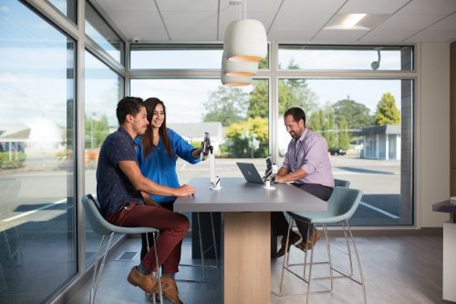 Verity, a Seattle credit union, has fully embraced technology. Their new branches don’t have teller line, or even pods, but rather a tool bench and open conversation spaces where universal associates can meet with members on their own terms, and where they feel comfortable. This is made possible by tablets that have a full range of banking service integrations, from checking account balances to loan applications. Cash handling machines allow easy and secure access to money for withdrawals.